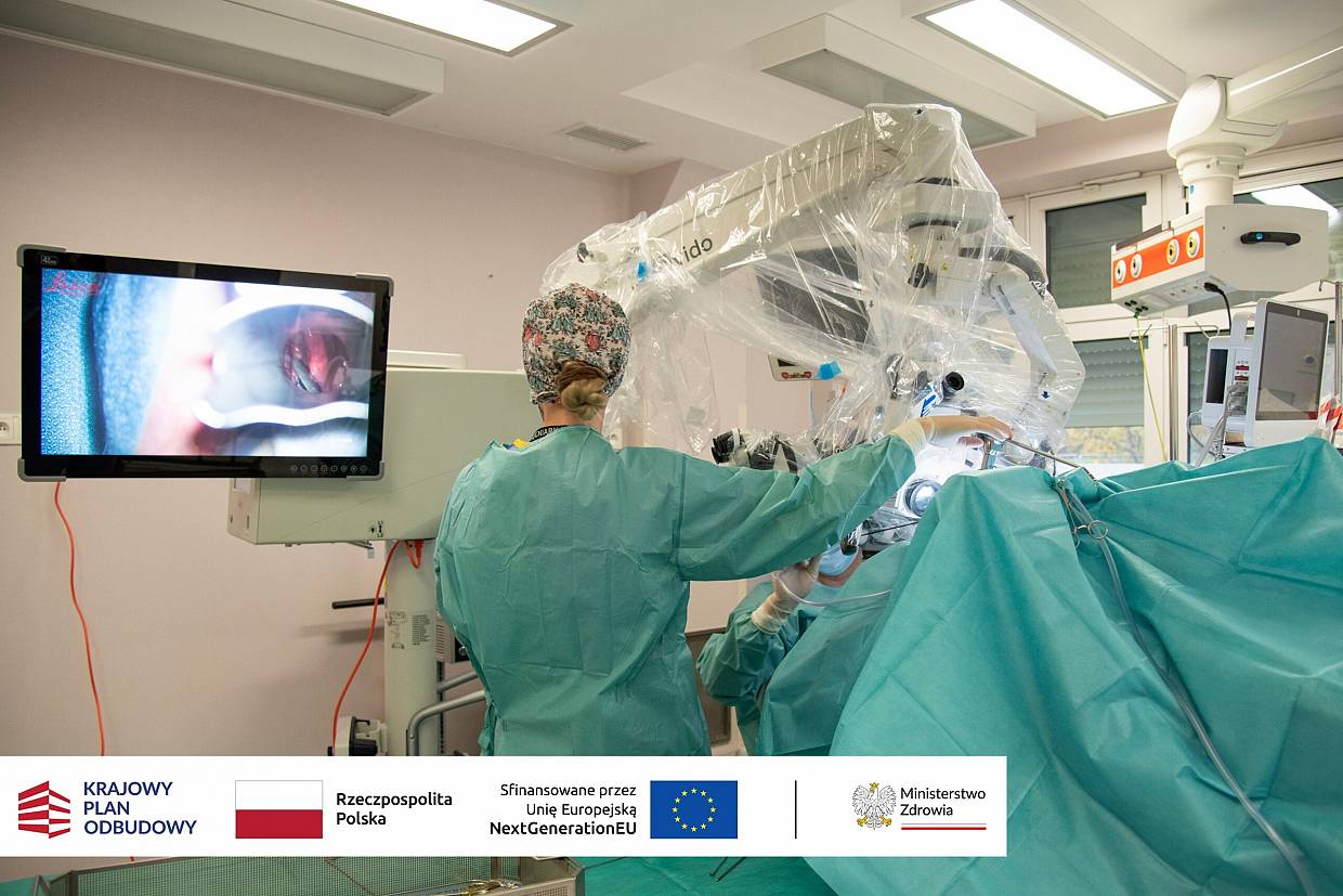 Nowy mikroskop operacyjny kupiony dzięki wsparciu z KPO już jest wykorzystywany przez lekarzy na sali operacyjnej słupskiego szpitala.